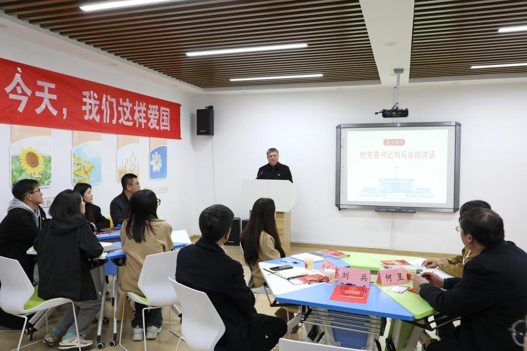 刘兵指出,热爱祖国是当代老员工的立身之本、成才之基,希望大家从知、信、行三个方面着力,把爱国情转化为强国志、落实到报国行中。一要知其义、培养爱国之情。爱国主义的本质就是坚持爱国和爱党、爱社会主义高度统一,要努力成长为具有家国情怀、专业知识、信息技术、职业素养、国际视野的复合性应用型高素质新财经人才。二要信其理、砥砺强国之志。要把“你是中国人吗?你爱中国吗?你愿意中国好吗?”的“爱国三问”继续问下去、答下去,把自己的小我融入祖国的大我、人民的大我之中。三要循其道、实践报国之行。要把爱党爱国之心转化为敢闯敢拼、锐意进取的行动,把忧国忧民之情转化为勤奋学习、努力工作的动力,将自身发展融入党和国家事业发展全局。