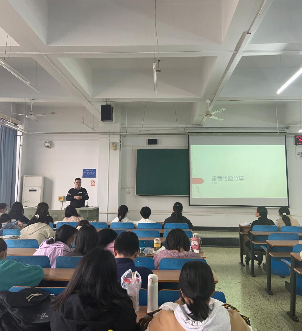 1122db旗舰第三教学楼A101教室举办考研经验分享活动主讲人为db旗舰2021级研究生李炳星张佳磊,辅导员王艳红老师出席2020级全体员工参加