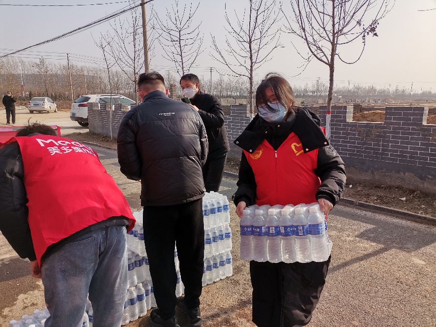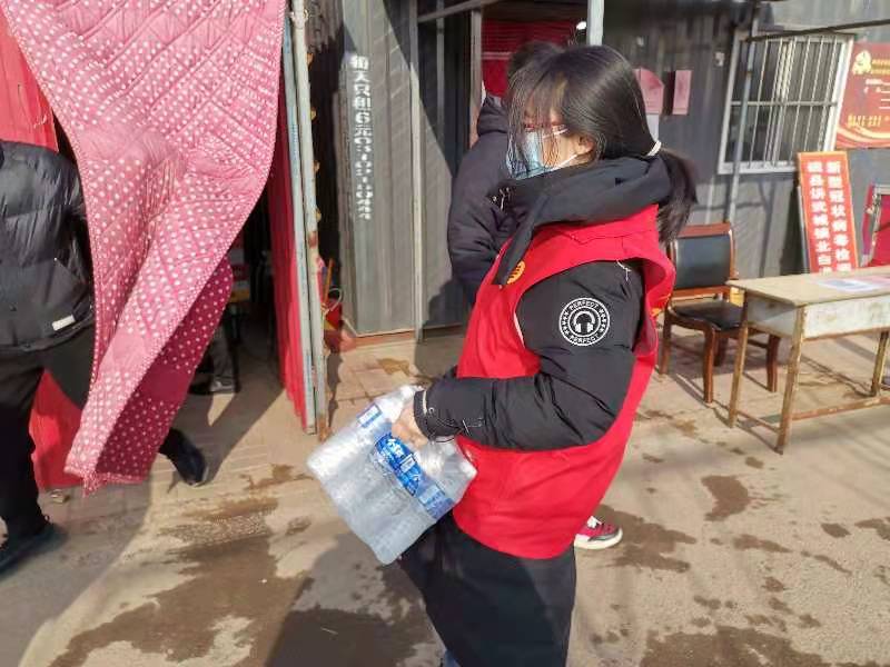 河南省安阳市的疫情来势汹汹,紧邻安阳市的河北省邯郸市磁县也加紧了防控措施,各个村落设置卡点,重点村落封禁测核酸。2021级公共管理4班的申子熠返乡后第一时间就报名参与志愿服务。她每天与其他志愿者到各村的卡点处为村民送上饮用水、面包、方便面等基础物资,作为一个女生她每天不仅要往返奔波于各个卡点,还要搬运大量的矿泉水等重物。当他们到达白道村口卡点处时,村主任表达了自己的谢意:“感谢你们的守护和帮助,谢谢你们冒着风险帮助我们!”申子熠说:“疫情面前,阻断的是病毒,隔不断的却是互相守望的心。我很荣幸能为居民们送去爱心物资,让大家隔离不隔爱,生活有保障,居家更安心,让这个冬天变得更加温暖。”