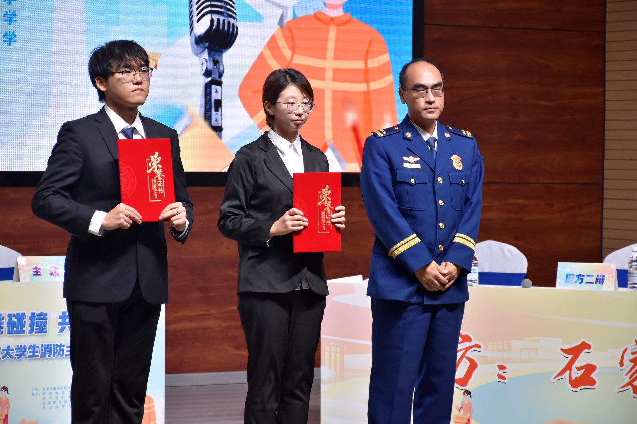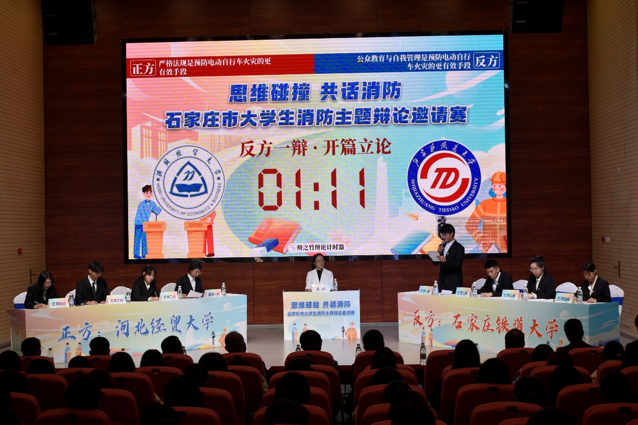 经过激烈角逐,公司闻鸣辩论队荣获优胜奖,丁利伟荣获最佳辩手称号。赛事共分为两场,河北师范大学真知辩论队、河北医科大学争鸣辩论队围绕“畅通生命通道,核心在于强化监管执法力度还是在于公众共识共治”展开辩论,db真人闻鸣辩论队、石家庄铁道大学博论辩论队围绕“严格法规还是公共教育与自我管理是预防电动自行车火灾的更有效手段”进行交锋。