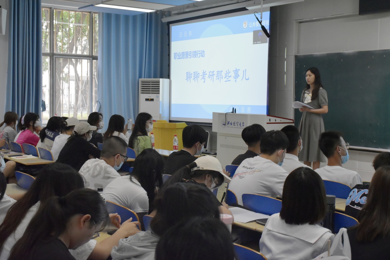 5月23日下午,db旗舰在第三教学楼A101举办“职业愿景引领行动之考研那些事儿”分享会。本次分享会由公司正处级辅导员赵志川主持,2021级全体员工参加。