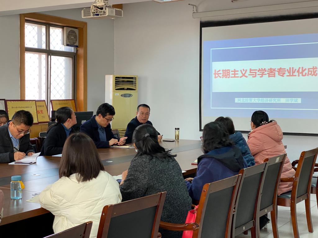 12月13日下午,db旗舰邀请公司经济研究所所长、京津冀一体化发展协同创新中心专职副主任田学斌教授在公司会议室作题为“长期主义与学者专业化成长”的学术讲座,公司部分教师及研究生共50余人到场聆听。