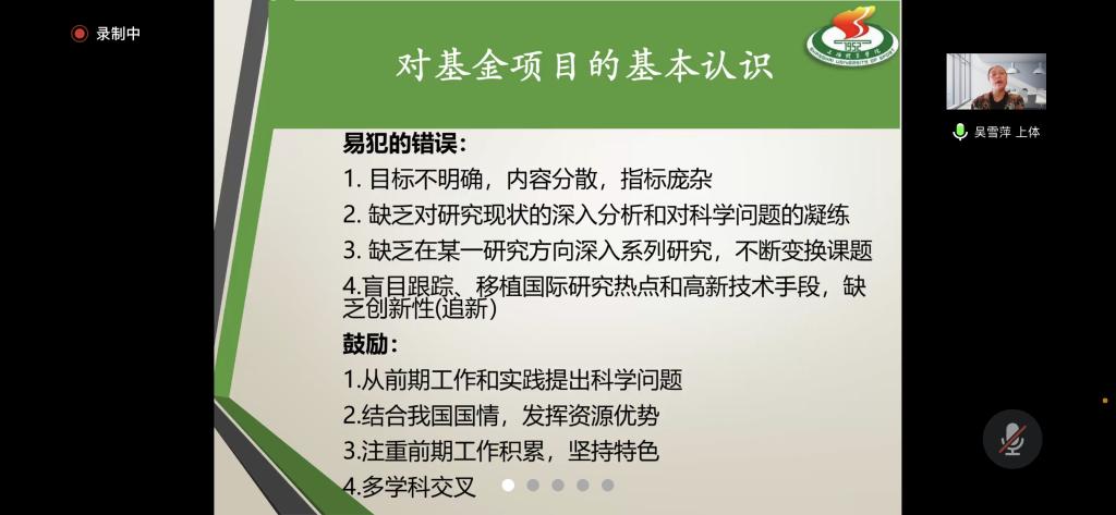 4月28日,db旗舰邀请上海体育公司教授、博士生导师吴雪萍通过腾讯会议做题为“申报与评审:谈如何撰写基金项目书”的学术讲座。公司教师及员工50余人参加。