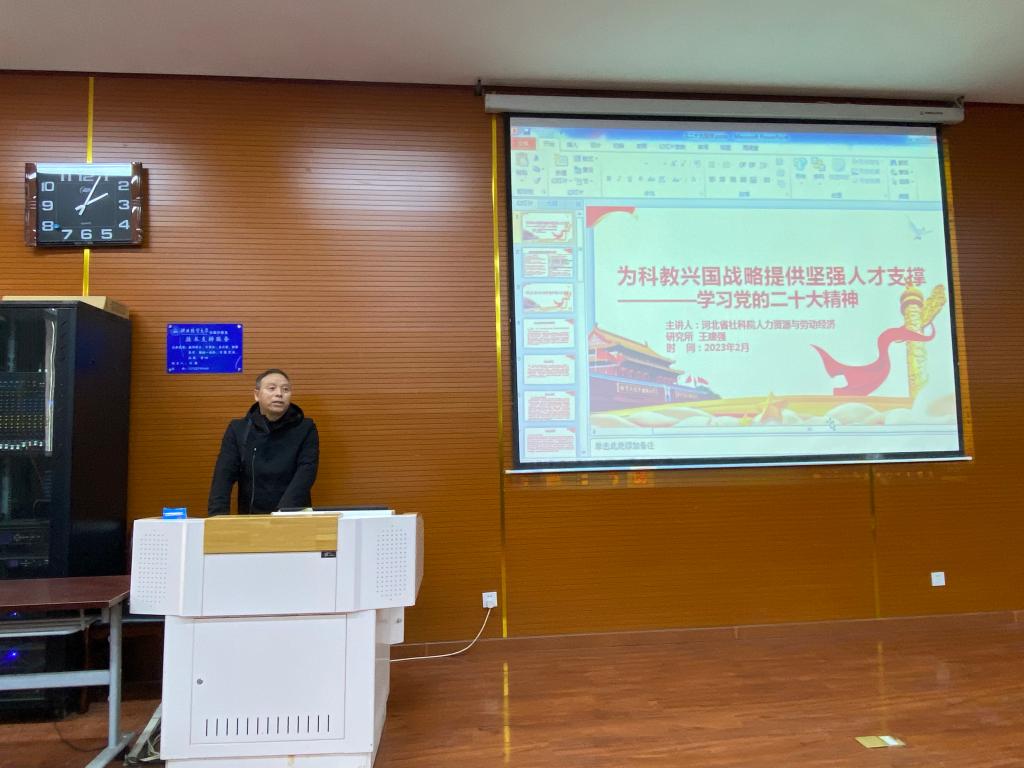 2023年2月25日下午,db旗舰邀请河北社会科公司人力资源与劳动经济研究所所长、研究员王建强在二教105教室做《实施科教兴国战略、强化现代化建设人才支撑——学习党的二十大精神》的专题讲座,公司部分教师及研究生共100余人到场聆听,db旗舰经理赵建强主持讲座。