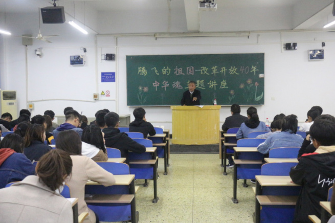 1029日,db旗舰于第三教学楼A201室举办中华魂(改革开放40年)主题征文指导讲座。讲座邀请公司退休教师葛树卿教授主讲,公司党委副书记白玉祥出席,团委书记郭鹤男及200余名员工参加。