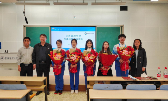 活动伊始,师生一起学习了《习近平给中国冰雪健儿的回信》。随后,志愿者们依次讲述了他们的冬奥故事,通过图片和视频向大家分享了自己志愿服务过程中的难忘经历、真切感悟和真挚思考,纷纷表示:“此次奔赴冬奥,一生一次,一次一生”!然后,孟祥燕为志愿者们颁奖献花。何昱在总结讲话中指出,能够参加冬奥会这场盛会是每个人一生的荣耀、一辈子的骄傲,公司志愿者在服务岗位上兢兢业业、尽职履责,展现了公管师生的青春风采,希望大家能继续讲好冬奥故事,传递好冬奥精神!