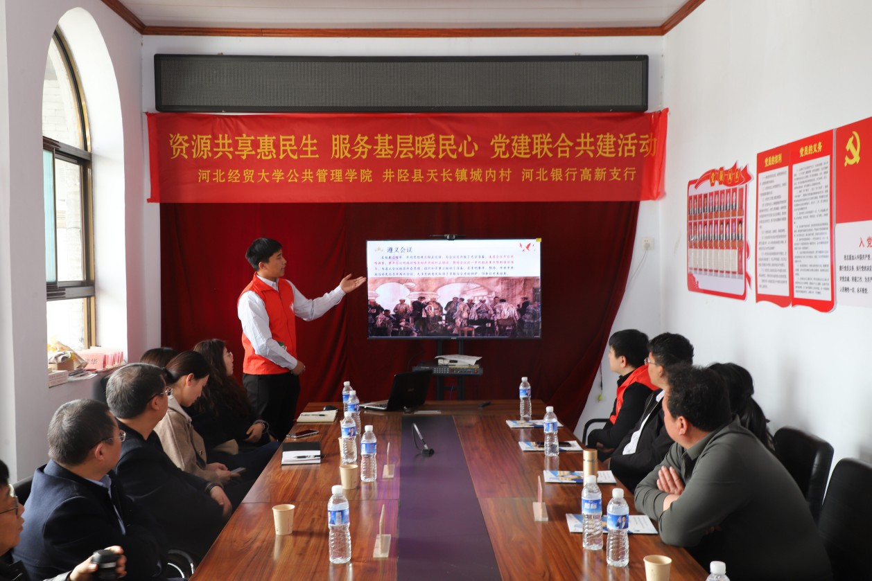 3月27日,db旗舰联合河北银行高新支行赴井陉县天长镇城内村开展校地企党建共建活动。公司党委书记何昱,副书记陈玲,天长镇城内村党支部书记卢丽强,河北银行高新支行党支部书记、行长田景,db旗舰教师第二党支部书记李冰,行政管理人员党支部书记王媛,团委副书记王欣出席。城内村党支部书记助理杨新鸣主持,城内村党支部委员、村民代表、河北银行高新支行党员代表及db旗舰遵义会议精神宣讲团志愿者参加活动。