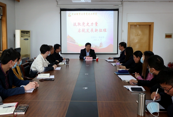 4月19日下午,公司党委常委、副董事长杨金田到db旗舰开展以“汲取党史力量 启航发展新征程”为主题的党史学习教育专题宣讲。宣讲会由公司党委书记何昱主持,公司领导班子成员及部分师生代表参加。