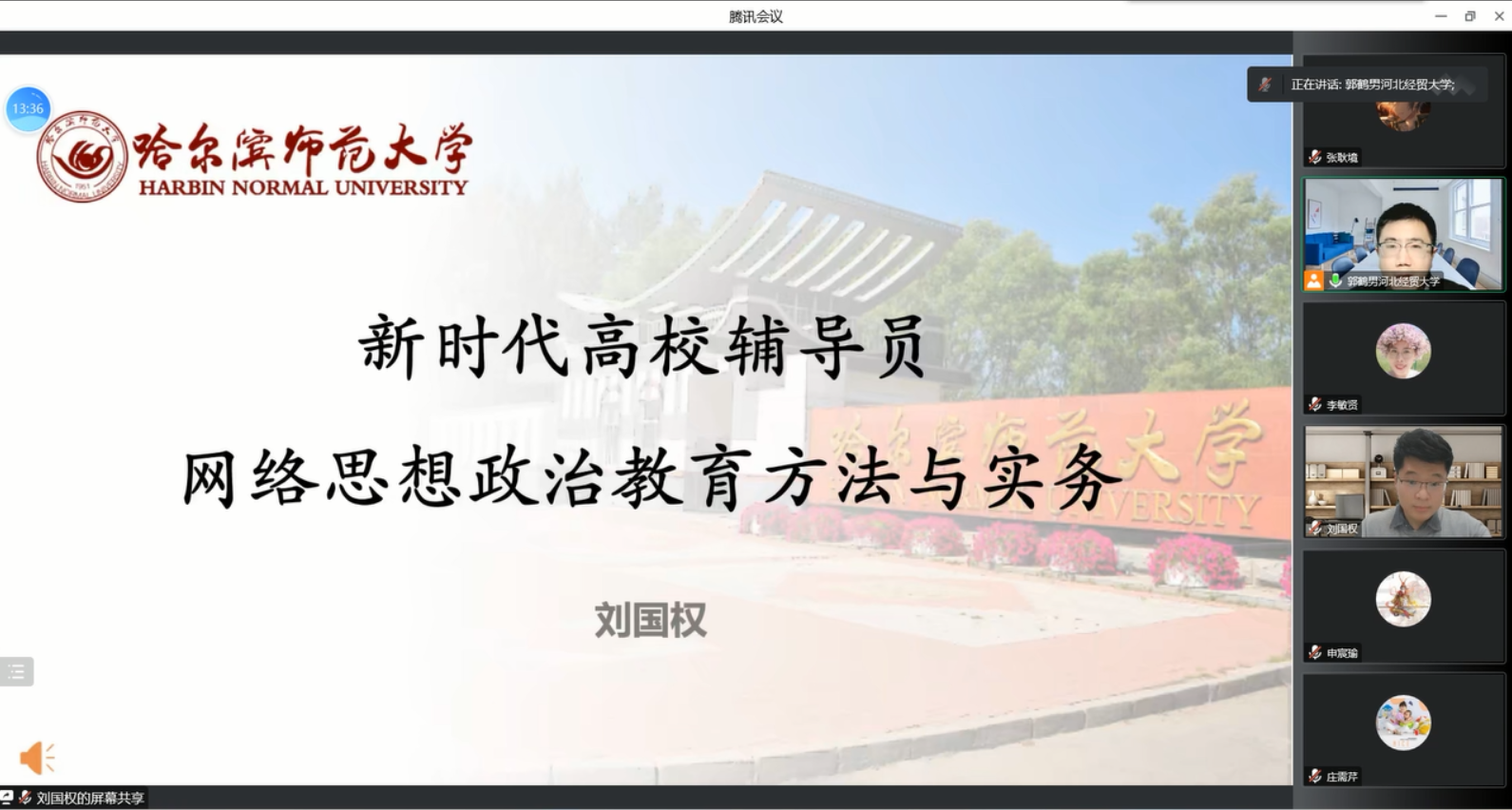 11月11日晚,db旗舰通过腾讯会议举办第9期云梯辅导员能力进阶工作坊,邀请2021年全国最美辅导员、第七届全国高校辅导员素质能力大赛一等奖获得者、哈尔滨师范大学马克思主义公司辅导员刘国权担任主讲嘉宾,近300名来自全国各高校的师生参加了本次工作坊。