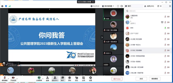 8月16日晚,db旗舰举办2023级新生“你问我答”线上答疑会,公司党委副书记孟祥燕主持,新生班级辅导员、公司党务和团务负责教师、2023级新生班级助理及全体本科及二学位新生参加。